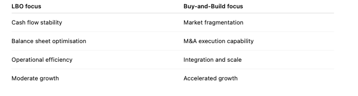 Many of the most successful PE investments combine both approaches: an LBO platform followed by a Buy-and-Build programme.