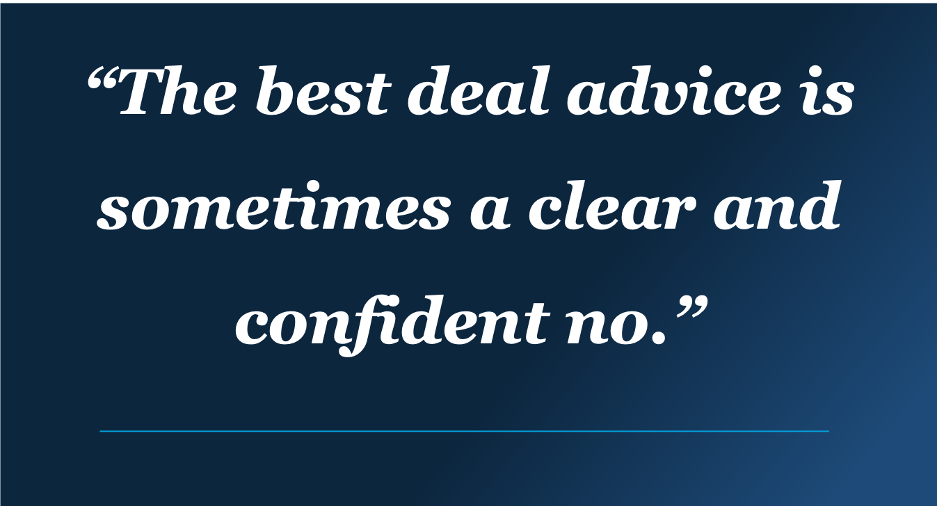 Saying “no” requires confidence, independence, and a long-term perspective. It also requires credibility: the ability to explain why a transaction is wrong, not just that it is.