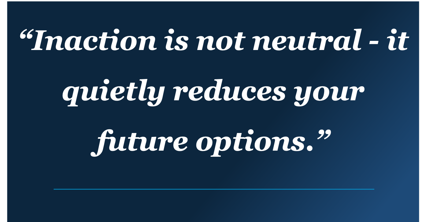 In practice, however, inaction is not neutral. It is a strategic choice, whether acknowledged or not. And for owners of sizeable, successful businesses, it is frequently the riskiest choice available.
