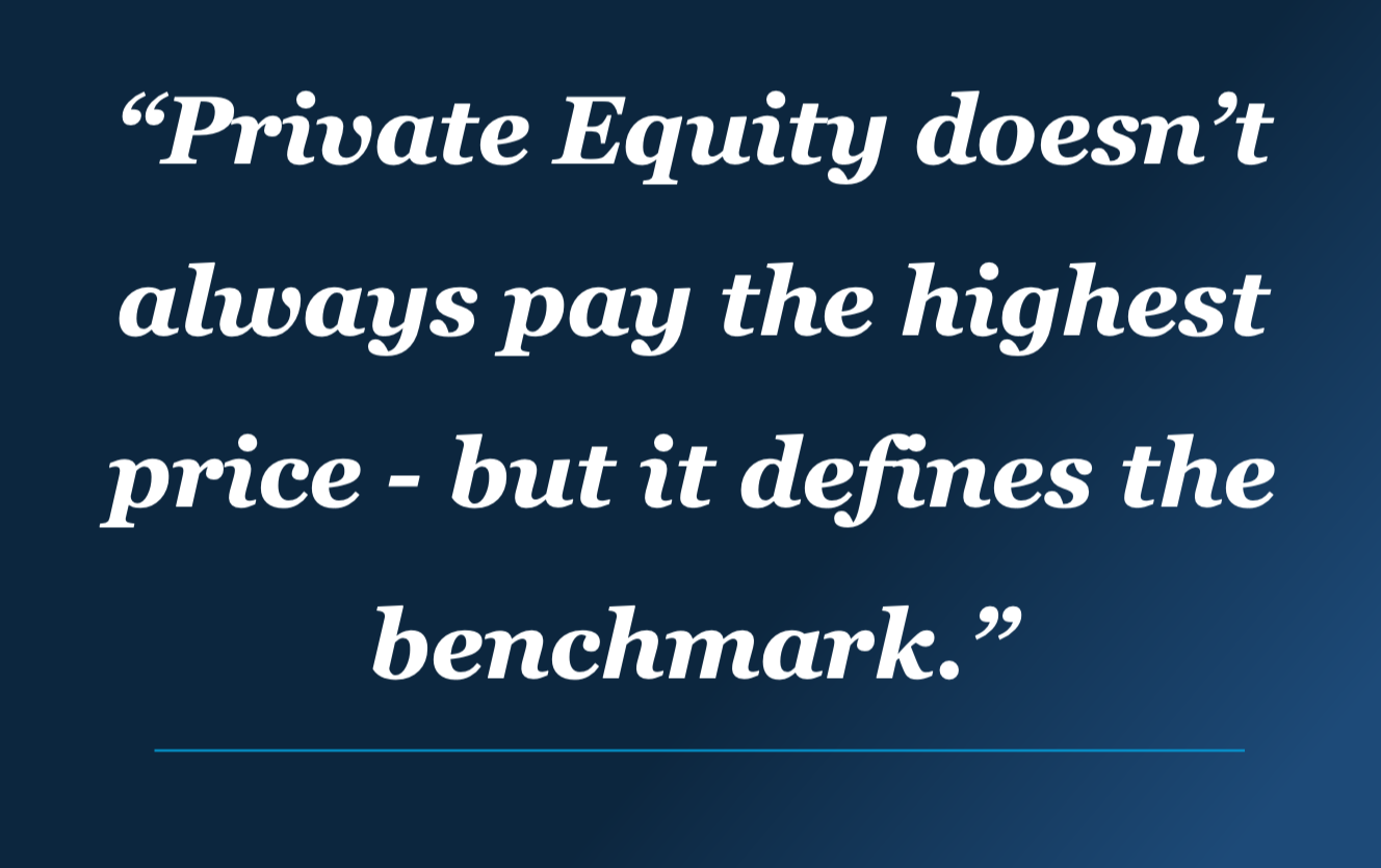 Yet when transactions actually happen, one group consistently shapes the benchmark against which value is judged: Private Equity investors.